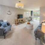 The spacious living room is decorated in a natural colour which gives a bright and airy feel. The fitted kitchen comes complete with integrated appliances including fridge freezer, Bosch ceramic hob, extractor fan, low level oven and microwave. We’ve also included a washer-dryer in a separate utility cupboard.