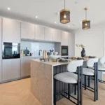 The penthouse boasts generous, light filled living spaces defined by floor to ceiling glazing, framing sweeping views across Manchester and the river beyond. Open plan interiors create a natural flow between living, dining and entertaining spaces, further enhanced by integrated air conditioning and electric blinds for effortless day to night comfort.