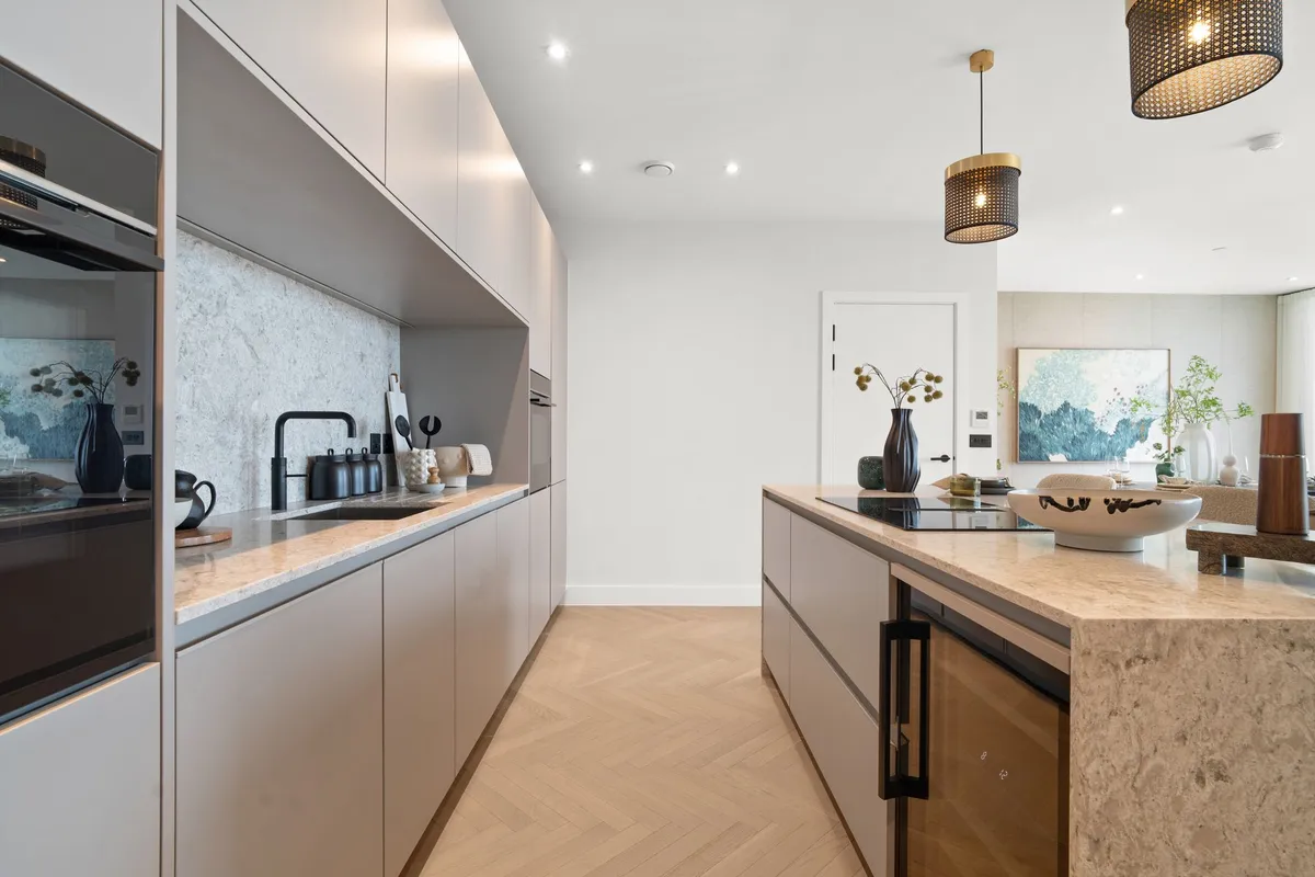 Fully integrated Siemens appliances, including a wine cooler and Quooker 3 in 1 tap