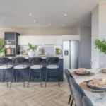 Step into a bright, modern space built for easy, elevated living. The open-plan layout flows around a sleek kitchen island and breakfast bar – perfect for slow brunches, late-night chats or that quick grab-and-go coffee.