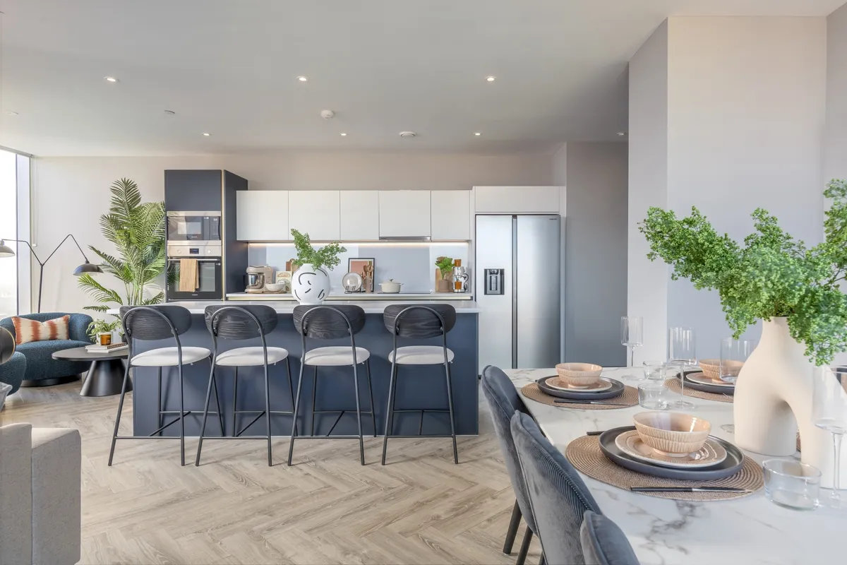 Step into a bright, modern space built for easy, elevated living. The open-plan layout flows around a sleek kitchen island and breakfast bar – perfect for slow brunches, late-night chats or that quick grab-and-go coffee.
