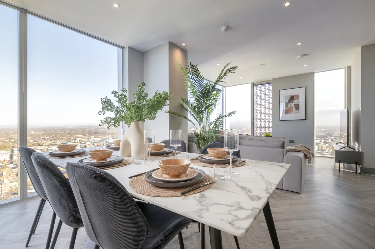 Live high above the city in this fully furnished 3-bed, dual-aspect apartment on the 47th floor – designed for those who love a skyline vibe.