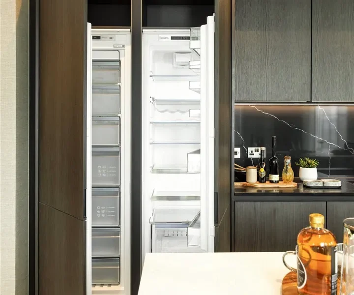 Internally, substance, style and comfort are attributes that run throughout. Boasting an estimated 1816 sqft and dual aspect with skyline views from the ninth floor, this luxury property is bright and well ventilated throughout. Sliding doors open on to a generously proportioned open plan lounge/dining area with feature bar. The perfect environment to showcase an old fasioned. Designed by Euromobil, the kitchen features Corian work tops and white high gloss soft close cupboards. Sleek and clean. Ample storage. Integrated appliances include a Samsung Twin Cooling fridge with pull out freezer drawers, twin ovens by Siemans and pop up Faber extractor fan. The island features a full length breakfast bar for informal dining. Opulent with careful attention to detail, the primary bedroom features a raised open plan en suite with signature roll top bath and convenient twin sinks. Fixtures and fittings by Artelinea. The guest bedroom offers matching en suite facilities whilst the third double bedroom could be used as a walk-in-wardrobe/study, dependent on your needs. A primary bathroom for added convenience. Accessible from every room and spanning the entire length of the property, two Loggia areas offer solace from the streets below and are a valuable asset to this exquisite apartment.