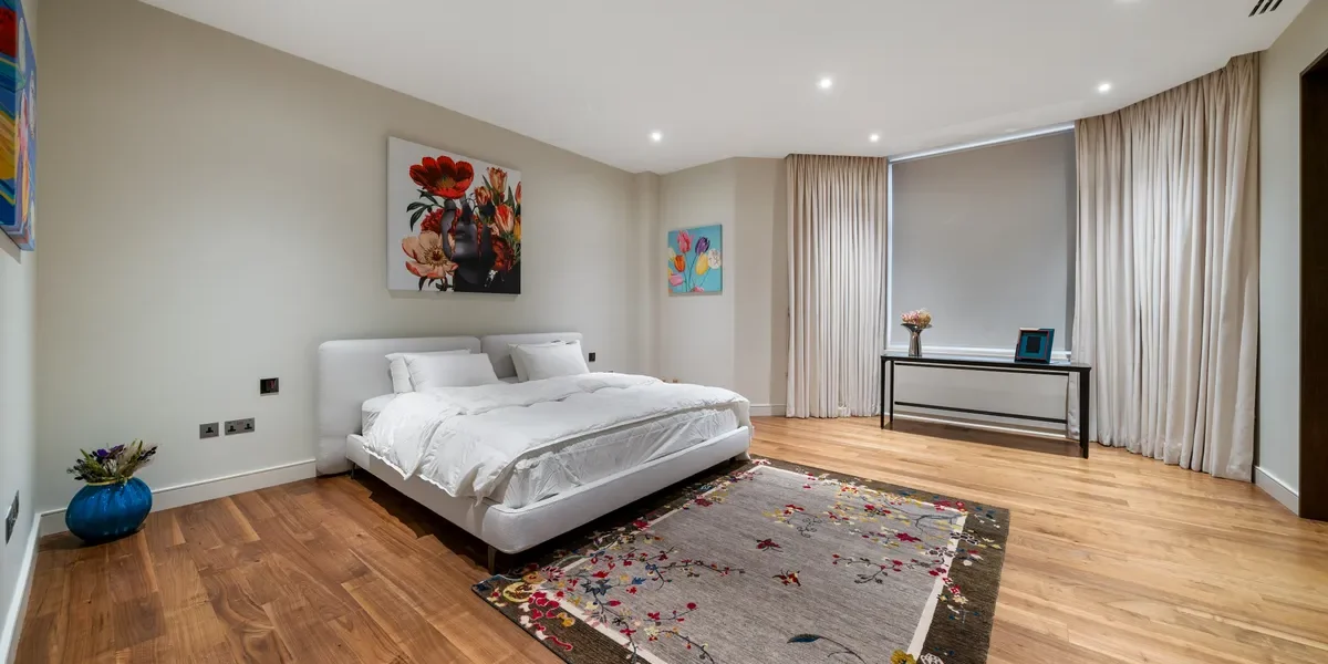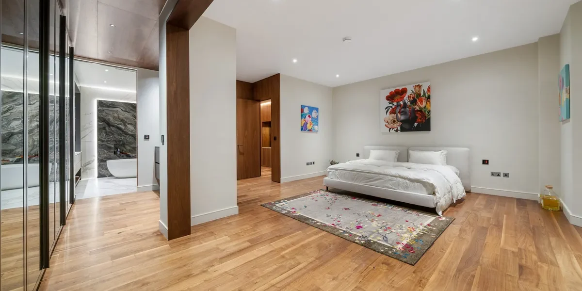 The large master bedroom has a dressing area and ample storage leading on to the luxurious marble bathroom suite. The Master bedroom has stunning views over Ennismore private gardens.