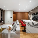 The four-meter ceiling height, beautiful award winning interior design and a working fireplace gives this room a real sense of grandeur. There is a fantastic contemporary kitchen, which has space for a breakfast table and chairs to allow for a more relaxed dining experience.