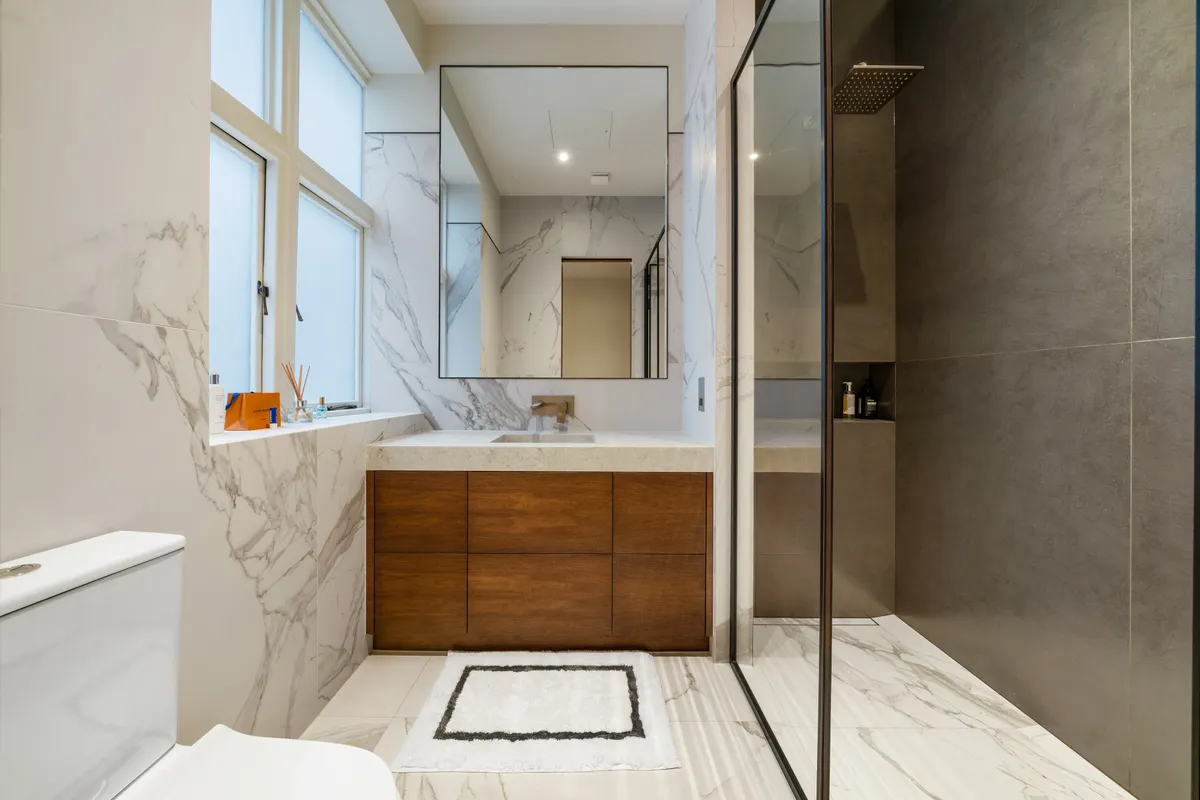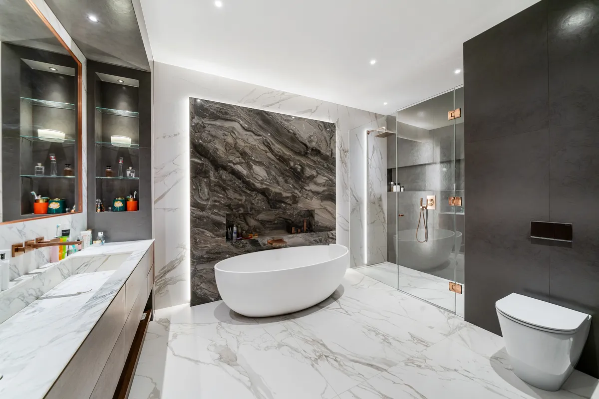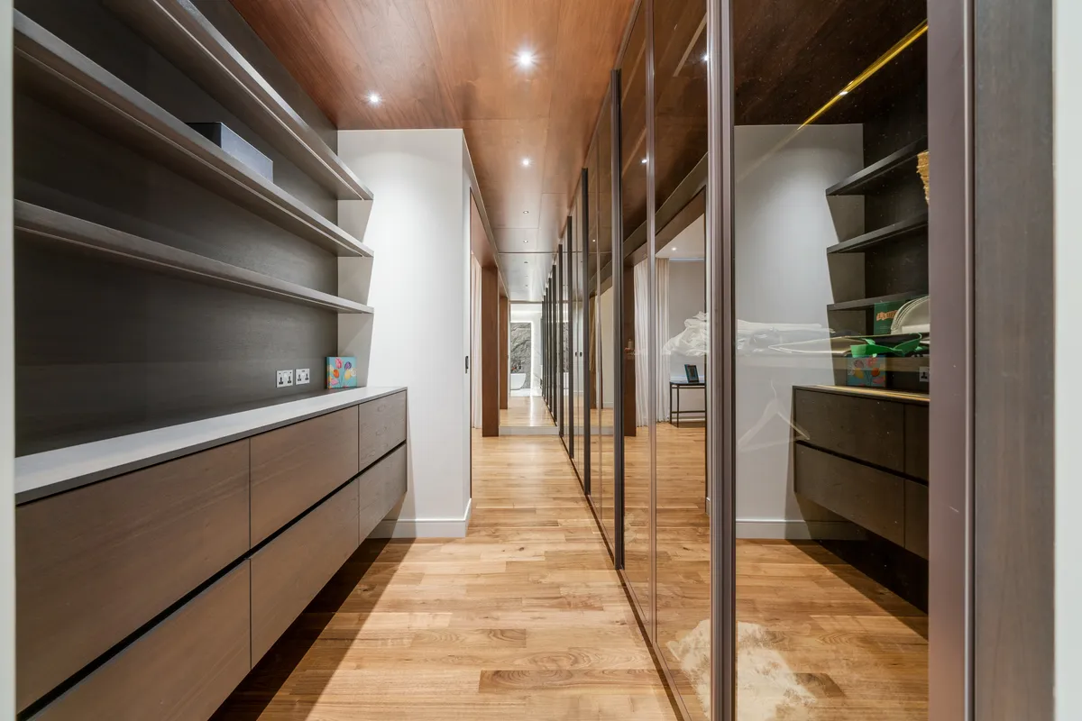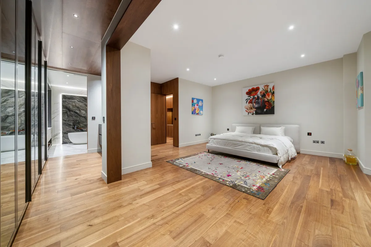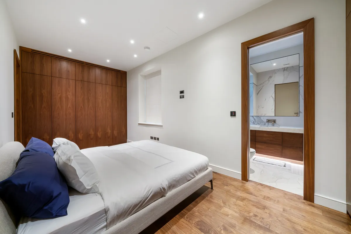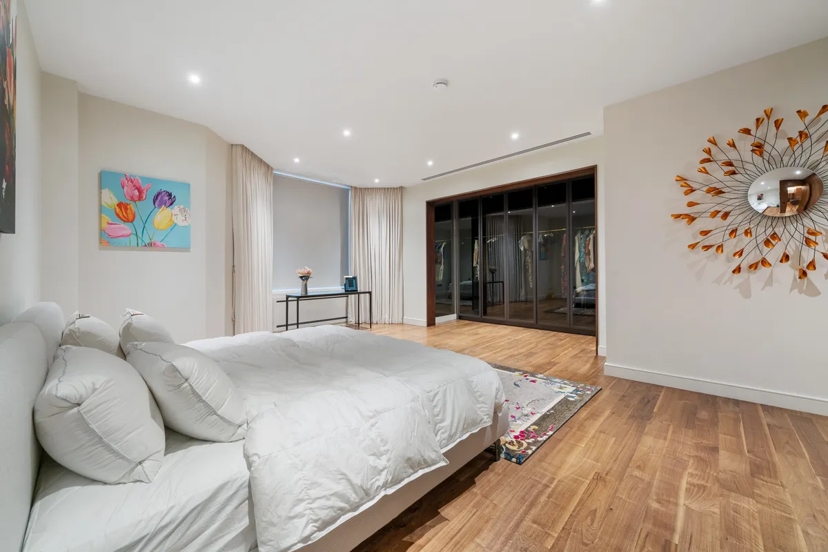 The large master bedroom has a dressing area and ample storage leading on to the luxurious marble bathroom suite. The Master bedroom has stunning views over Ennismore private gardens.