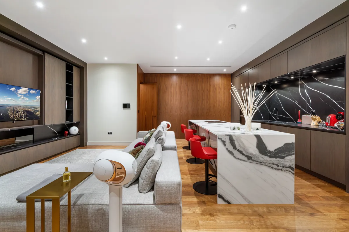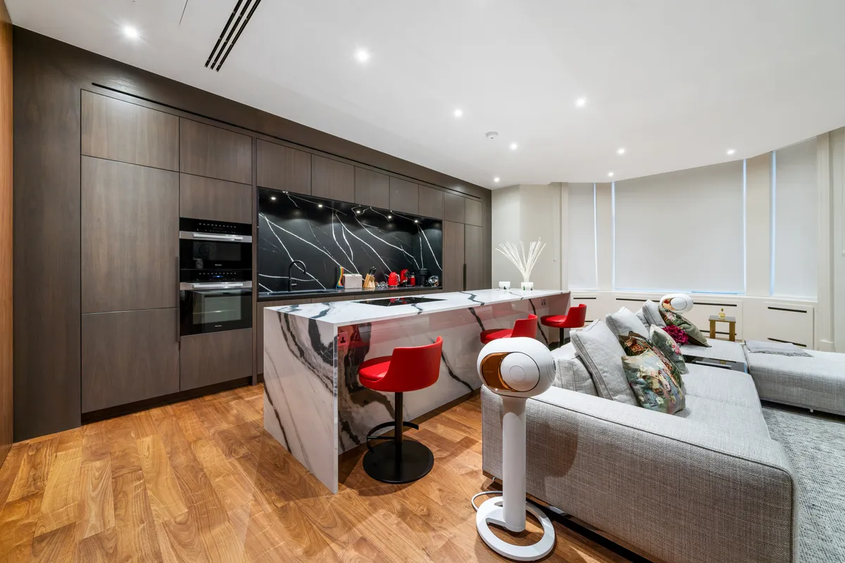 The four-meter ceiling height, beautiful award winning interior design and a working fireplace gives this room a real sense of grandeur. There is a fantastic contemporary kitchen, which has space for a breakfast table and chairs to allow for a more relaxed dining experience.