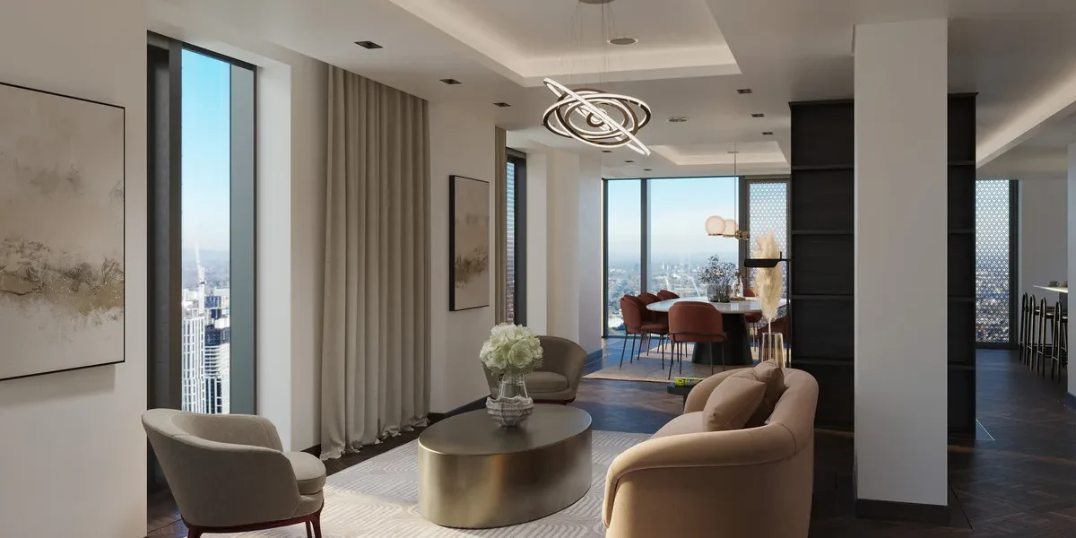 Occupying the uppermost levels of the 40-storey Viadux tower, this penthouse represents the pinnacle of contemporary luxury living in Manchester. Elevated high above Great Bridgewater Street, these exceptional residences command sweeping, floor-to-ceiling views across Castlefield, Deansgate, Spinningfields and the city skyline, offering both privacy and presence in equal measure.