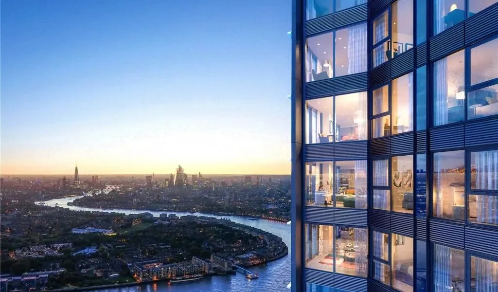 Situated on the 53rd floor of Aspen at Consort Place in Canary Wharf, this exceptional three-bedroom apartment offers approximately 1,100 sq ft of contemporary living space with breathtaking west-facing views across the London skyline.
