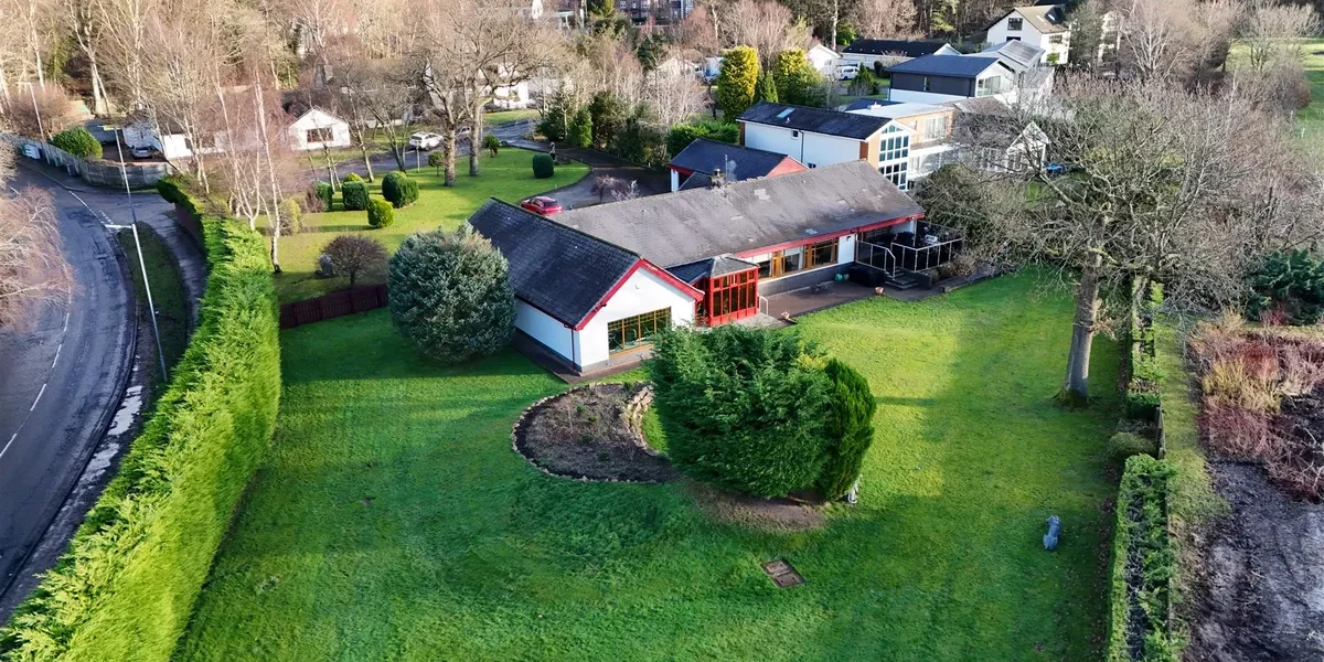A large, all on the level detached bungalow, set within large established and private gardens that over look the 12th fairway and green of Bothwell Castle Golf Club.